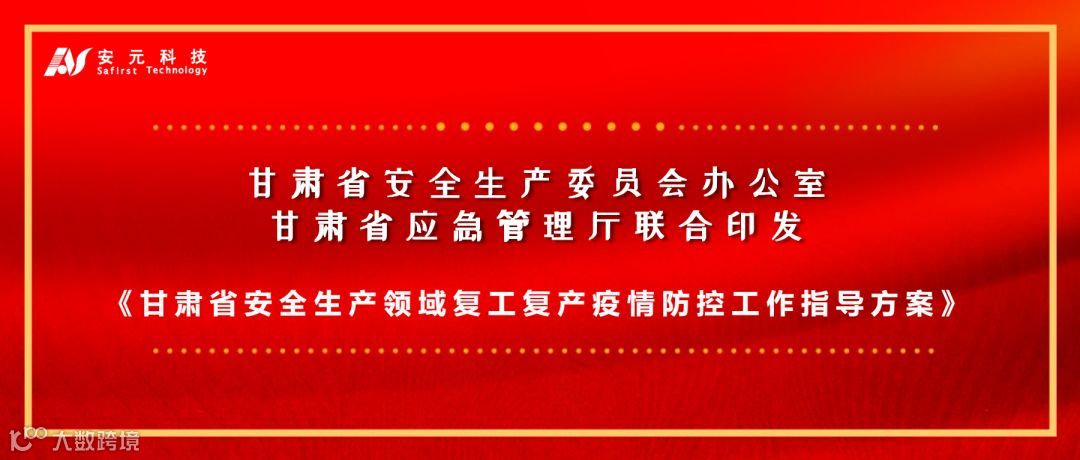 近日,甘肃省安全生产委员会办公室、省应急管理厅联合印发了《甘肃省安全生产领域复工复产疫情防控工作指导方案》,督促企业疫情防控与安全生产一起抓,切实推进复工复产工作。