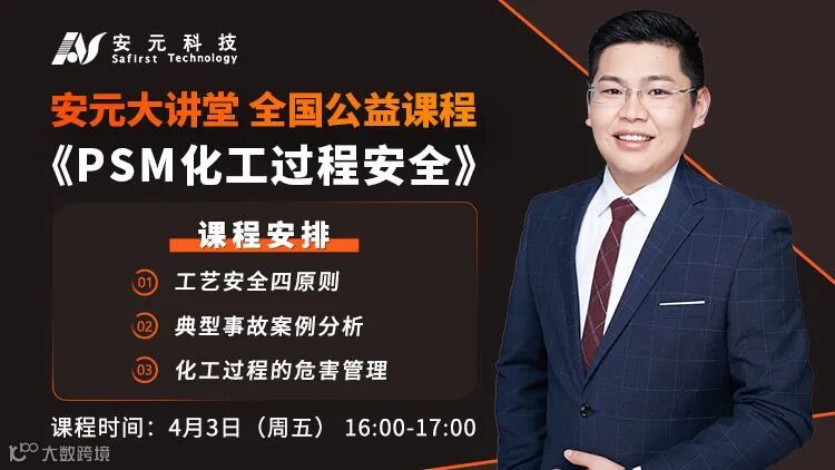 4月3日,安元大讲堂第十二期公益课程开播。此次课程邀请了徐州安全产业技术研究院院长助理、国家注册安全工程师、安全评价师、质量管理体系&环境管理体系注册外审员、徐州市安全生产专家吴威威。他以“PSM化工过程安全”为题,深入分析了印度博帕尔事故的原因,总结提出了工艺安全四原则,重点介绍了化工过程的危害管理。他很好的帮助大家对过程安全管理中工艺安全、危害管理等要素有了更深入的理解。