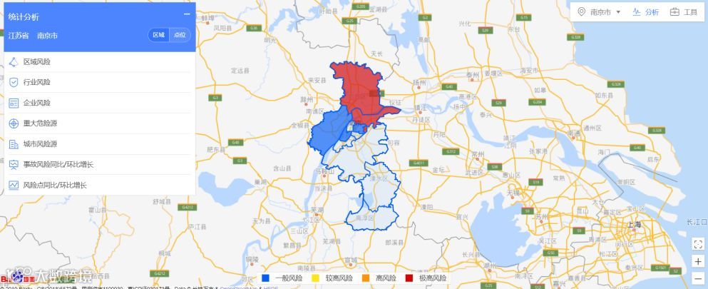 基于GIS地图进行开发,生成综合风险一张图,可实现企业定位、简要信息查询等功能,综合展示安全生产风险形势, 包括但不限于对企业分布情况、各行业安全风险情况等进行多维度分析,帮助集团性企业、园区及政府掌握整体风险情况并作出决策提供更多清晰可靠的依据。