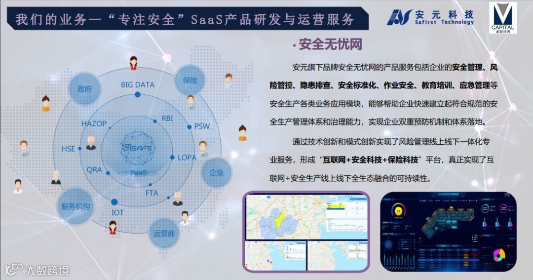 安元科技深耕行业16载,已拥有国内领先的多项自主知识产权的云计算平台、物联网平台、大数据平台和行业专业模型,通过了国家科技成果鉴定并获得了国家科技进步奖和多项省部级科技奖励。参与承担了多部行业规范和标准的编制工作,所研发的一系列软硬件产品获得了应急管理部、国家科技部、国家工信部、国家交通部等部委重点推广,并在国内二十多个省市地区得到了广泛的应用。