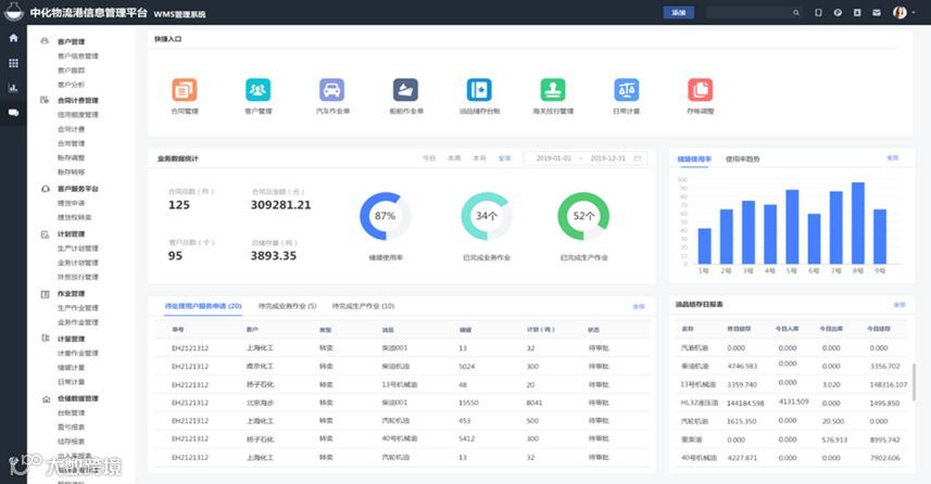 对业务生产过程中产生的关键数据进行客户、合同、货品、储罐、作业类型、盈亏等各个维度的统计,为业务和生产作业提供数据参考、数据归集、数据分析等服务,从数据的维度提高业务生产效率,为企业经营和决策提供支持。