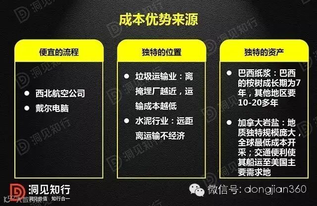 是着眼于长期竞争力,而非短期的高成长。但是经济护城概念往往会被我们投资者误判,很多人会认为优质的产品、庞大的市场占有率、卓越的执行力、杰出的管理者等这些都是护城河,但是以上所说的几项是不是短期内很容易被竞争对手学习而被复制抄袭,无法长期保持竞争优势。真正的护城河是更容易产生长期的高资本回报率的壁垒。主要从价格与成本两个层面,五个重要的壁垒。如下图所示。