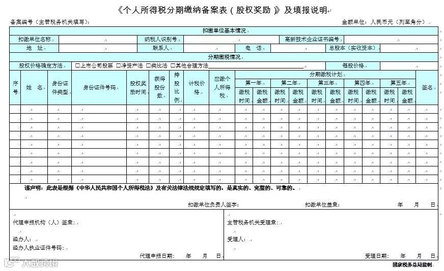 附件:1. 《个人所得税分期缴纳备案表(股权奖励)》及填报说明