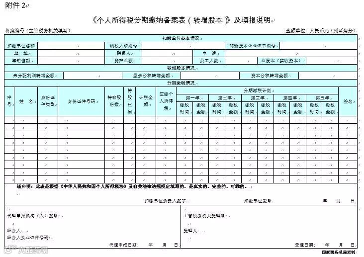 2. 《个人所得税分期缴纳备案表(转增股本)》及填报说明