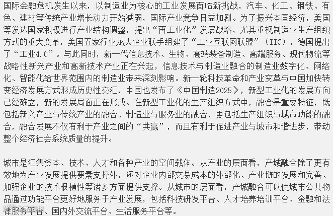 导读:积极统筹产业发展、人口集聚与城市建设协同发展,使城市的承载力与产业规模和人口规模相适应,以产业与城市深度融合提高民生福祉,加强公共服务设施建设,改善区域环境质量,保持生态功能稳定,使产城融合发展成为企