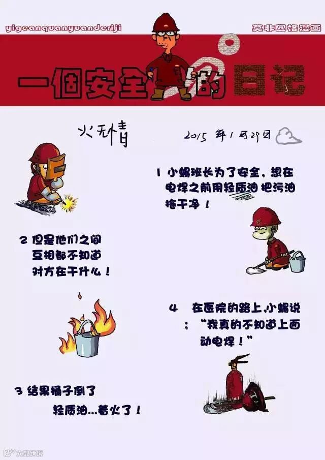 安元科技“通过对安全事故的分析讨论,我发现事故原因中:人是最主要的、而且占主导地位的因素。正是从这一思路出发,我就有了一些创作想法,希望用漫画的形式表现安全工作的重要性。让我身边的同事们知道安全不是生硬的、教条的、和抽象的概念,而是活生生,有血有肉地在我们的身边存在。为此,我从作业区生产实际出发,以生产生活的故事创作了这组安全漫画。绕过生涩的文字,希望这种诙谐幽默能向大家传递安全生产重要性。”