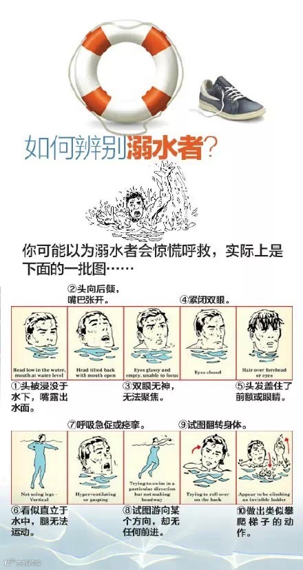 据统计,全球每年37.2万人死于溺水。 每小时就有40人被淹死! 超过一半在25岁以下。 溺亡率最高的是5岁以下儿童。 记住这个知识贴, 关键时刻救你一命!
