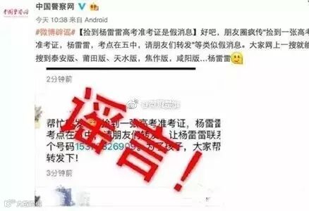 “捡到一张高考准考证,刘明炜,考点在一中,请朋友转发,让刘明炜联系这个号码15,这个孩子一家肯定急死了,扩散,扩散,别耽误孩子高考!”最近几天,网民对这条信息并不陌生,部分不明真相的网友还“热心”地转起来。其实早在2012年,就有“的准考证掉了”的谣言。谣言中所留电话号码可能是借高考热度的吸费电话。不法分子还可能通过对话套出“好心人”的支付宝、银行卡等账号密码信息,借此转走钱财。