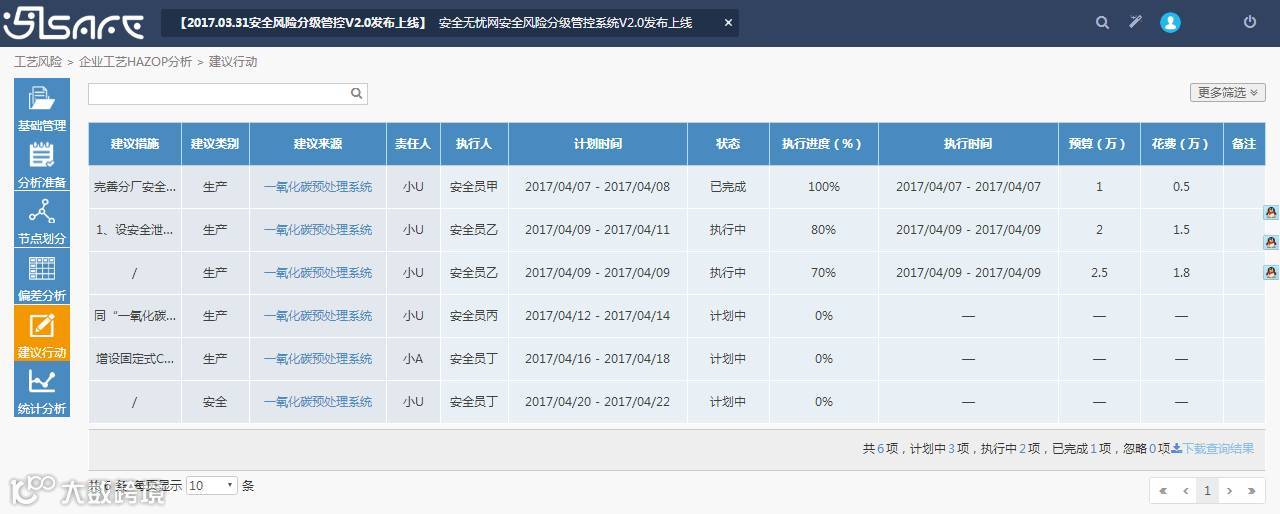 超越传统HAZOP分析工具主要解决分析工作编辑的问题,结合国家安全总局规划要求,为提高普通经验使用者的危险辨识及风险管理能力,打造了基于信息化平台的企业工艺HAZOP分析系统,引领HAZOP分析走进生产企业,提高行业企业的运行风险管理水平, 企业工艺HAZOP分析系统功能特点:
