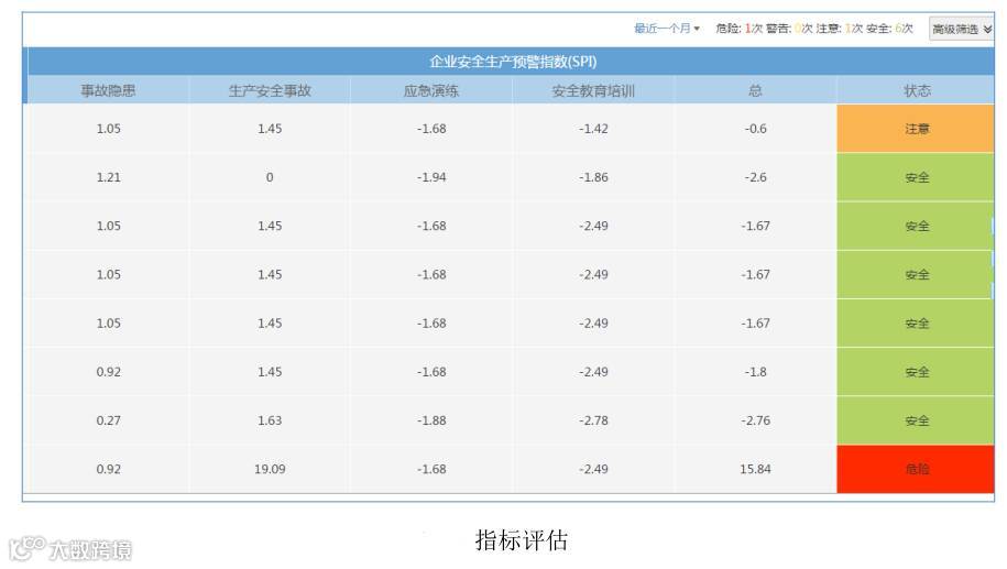 安全生产预警系统具有定量化、图形化、直观化、实时化的特点,在全面掌握安全生产管理现状、制定安全评价标准及目标、优化企业安全管理模式、安全现状智能预警等方面具有明显的优势,是企业加强企业安全生产管理工作、安全生产标准化一级创建、分析安全生产整体形势的必不可少的“利器”。