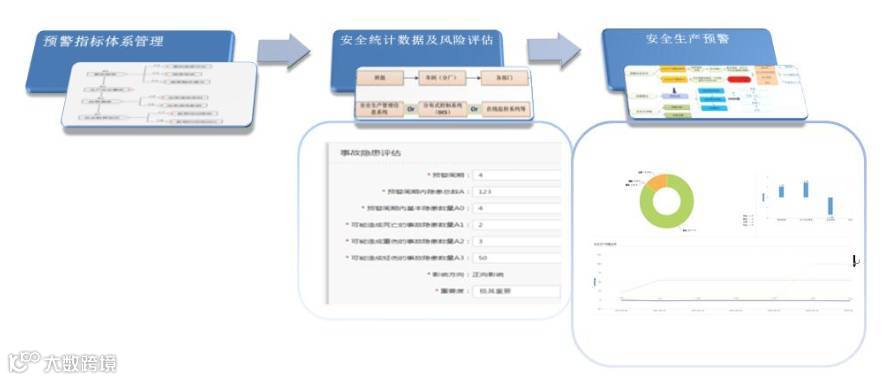 完善事故预警机制是建立在预警系统基础之上,而安元科技的预测预警系统是一项集安全、数学、统计、云计算等多种交叉学科于一体的安全生产管理应用体系。系统以日常安全生产产生的大量数据为基础,辨识和提取有效信息,分析其可能产生的后果并予以量化,通过专业的预测预警模型进行统计、系数修正、分析,得出安全生产预警指数,形成直观的、动态的反映企业安全生产现状的安全生产预警指示图;运用预测理论,建立数学模型,对未来的安全生产趋势进行预测,形成安全生产趋势图。