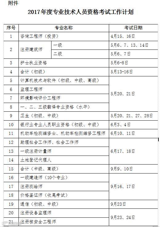 2017年度专业技术人员资格考试计划及有关问题的通知