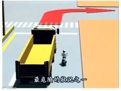 在遇到泥头车或拖车、公交车等大型车辆拐弯时一定要注意保持距离,原因就在于这些车拐弯时会产生一个致命“内轮差”,这个地方是司机视线的盲区。车身越长,方向盘打得越多,形成的“内轮差”越大。