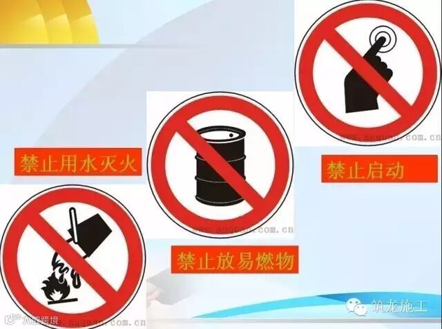 安全标志是由安全色、几何图形和图形符号构成。分为禁止标志、警告标志、指令标志、提示标志四类。
