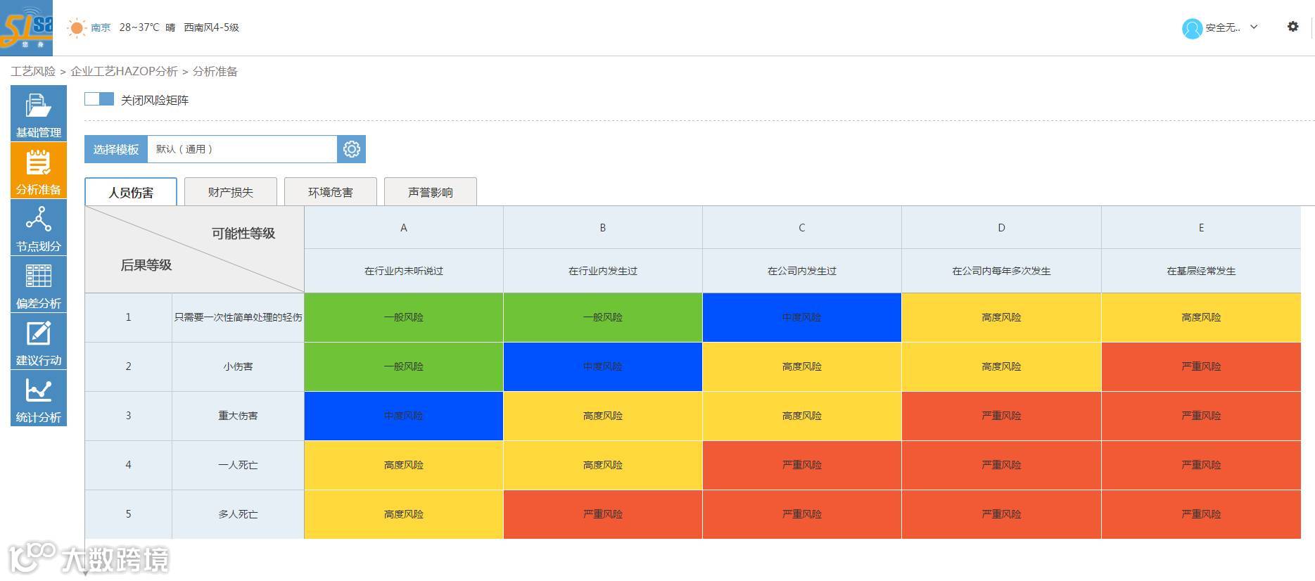 7、最后统计分析,软件自动生成HAZOP分析报告,包括方法简介、分析节点清单、统计分析范围、初始风险等级分布、剩余风险等级分布以及所有节点的分析记录表。