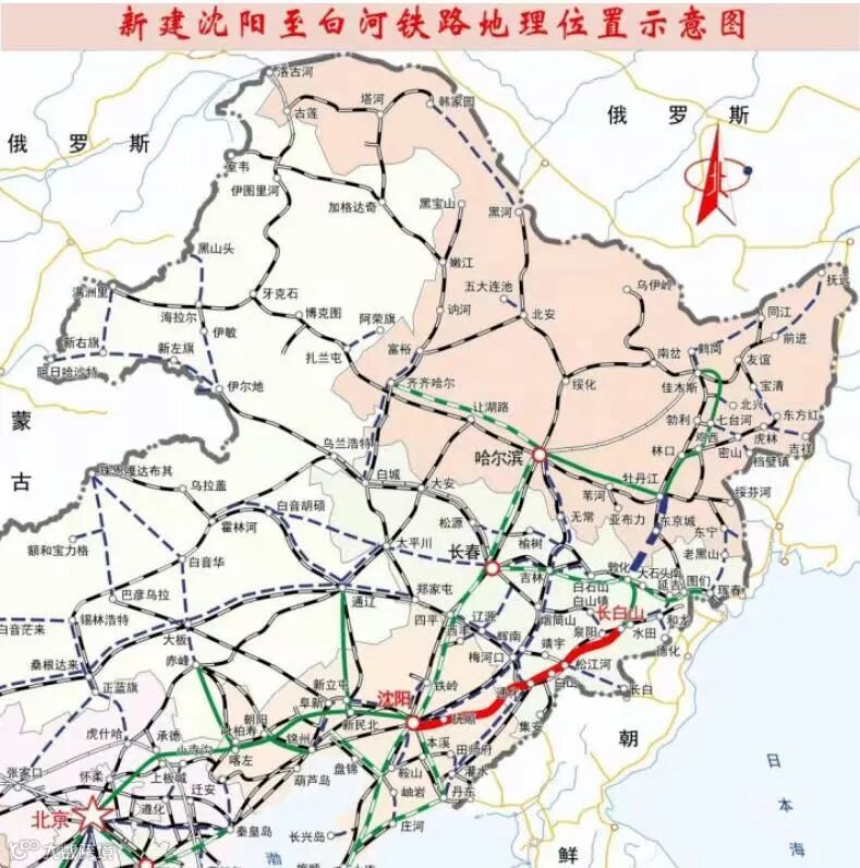 沈白铁路位于东北地区辽宁省东部和吉林省南部,沿线经过沈阳市、抚顺市、通化市、白山市、延边自治州、长白山管委会等6个地市级行政区。线路自沈阳北站引出,并行沈吉铁路、沈吉高速公路通道引入抚顺北站,之后经抚顺市新宾县到达吉林省境内。