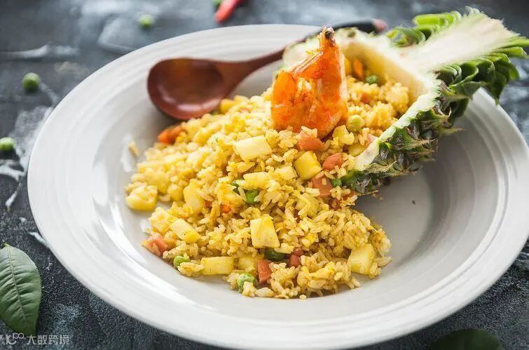 原料:菠萝、米饭、胡萝卜、豌豆、肉松、洋葱、虾、腊肠、鸡蛋、精盐、黑胡椒、油