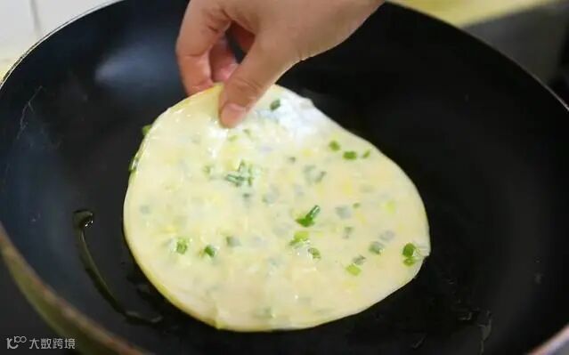 4.平底锅加热倒入油,放入葱油饼,中小火煎至两面金黄,好吃的千层饼就好了。