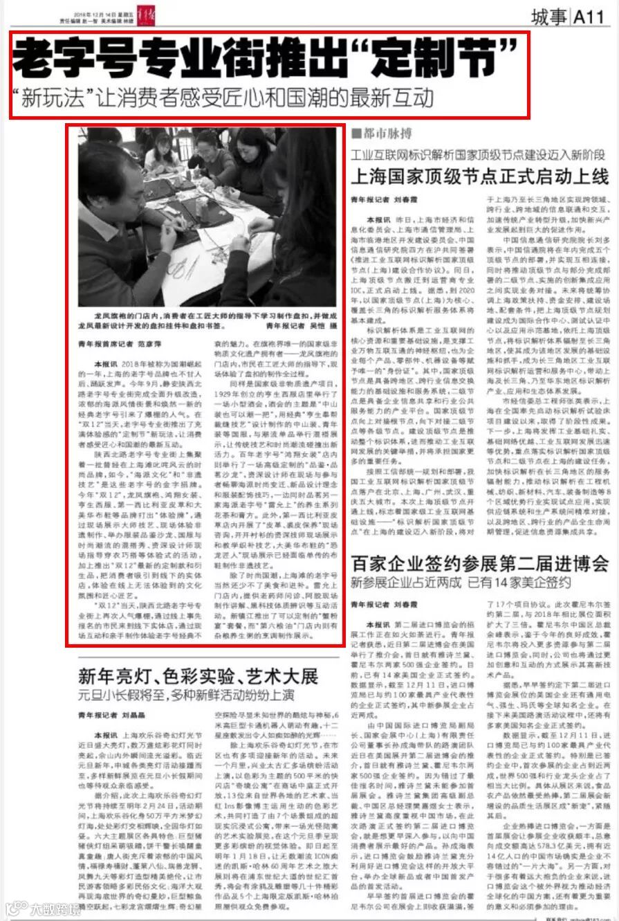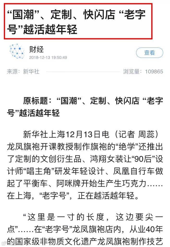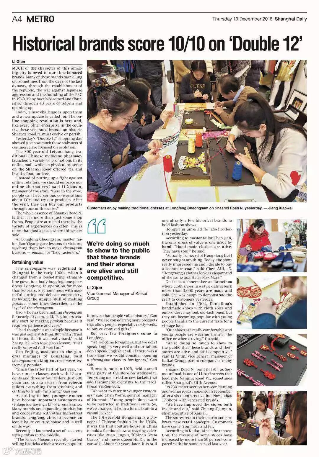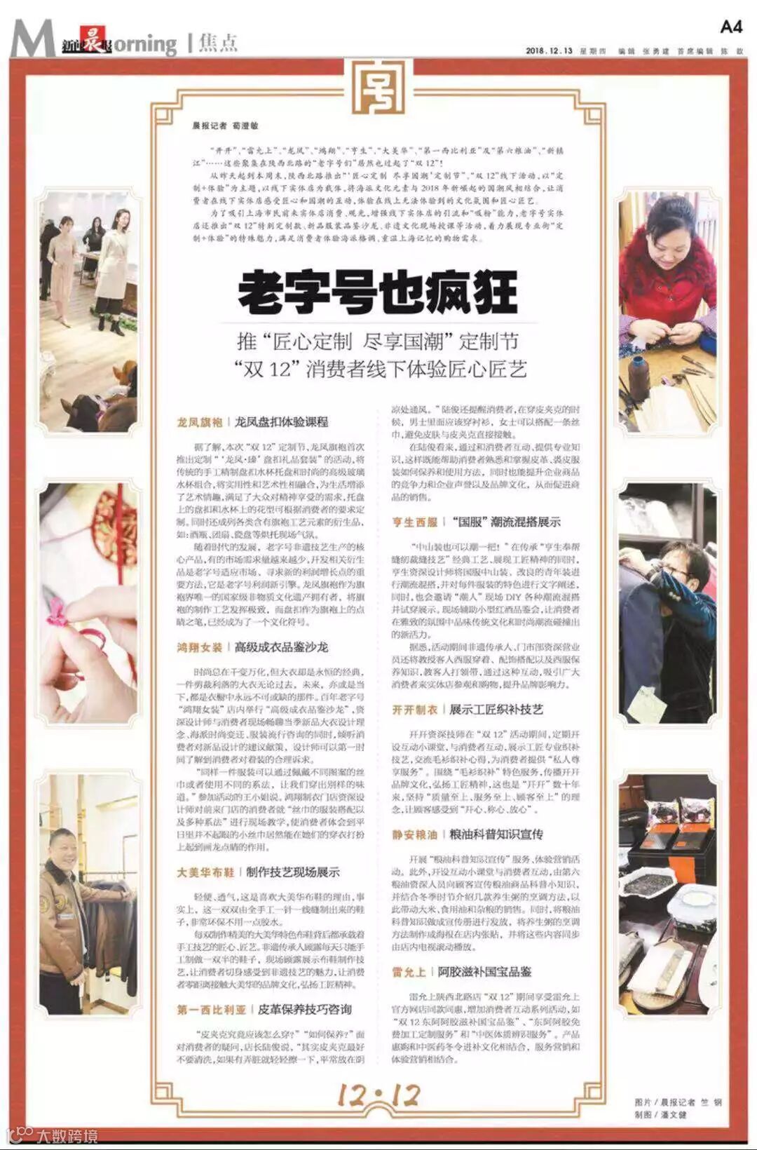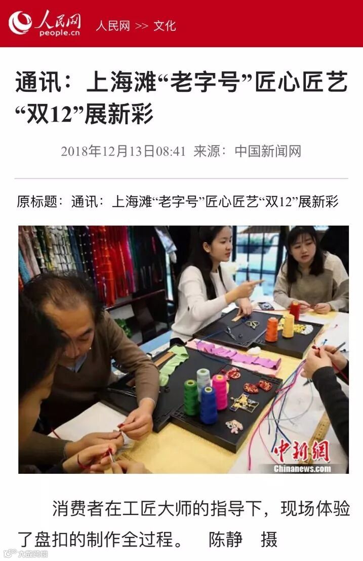 人民网:正逢“双12”,知名的“老字号”纷纷打出“体验牌”:店堂里,大师现场展示“绝活儿”、“秀出”非遗制作手艺、国服与时尚潮流的混搭秀……