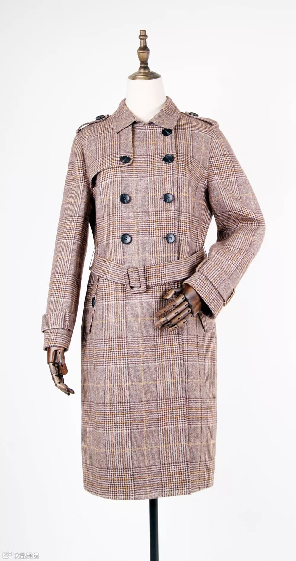 鸿翔千鸟格双排扣风衣,选用温暖羊毛布料,百搭而帅气,是时下女性冬日必备的单品。