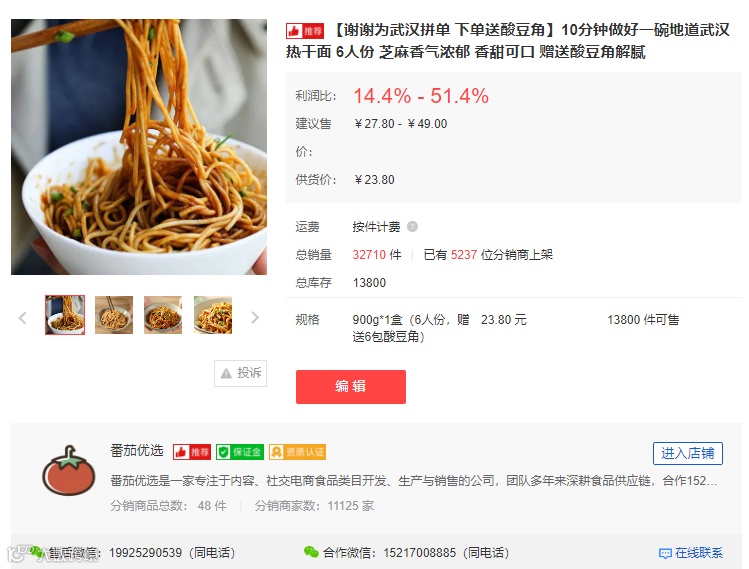 另一方面,是用极致的供应链效率,来提供高性价比的用户体验。「比如 4 月卖爆的热干面,团队力求做到同样的价格,规格更大,同样的规格,价格更低。」