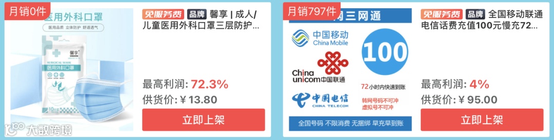 生活刚需用品一应俱全,帮助店铺迅速冲量,例如:话费充值