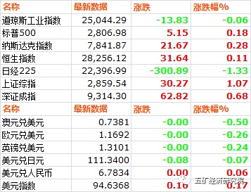 主要股指汇率