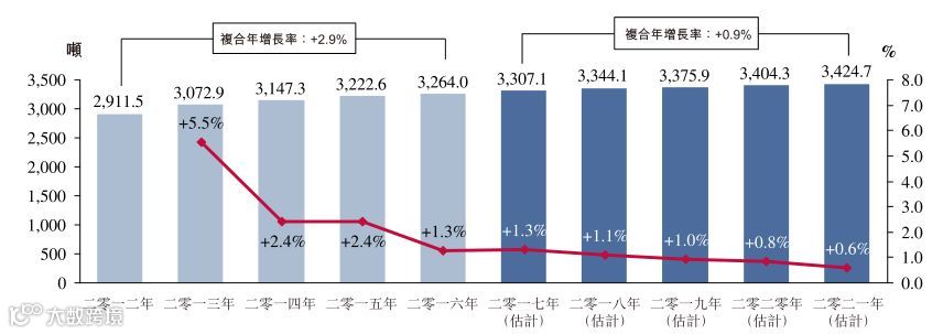 目前全球黄金供应也在不断走低,根据弗若斯特沙利文的统计,2012年至2016年间全球金矿生产量复合增长率仅为2.9%,并预计2017至2021年复合增长率为0.9%。