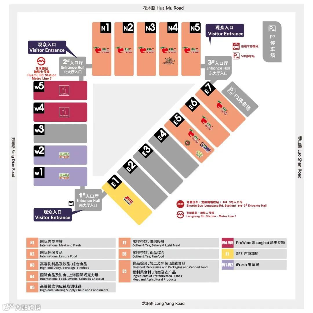 1号南入口大厅:位于芳甸路与龙阳路交叉口,可直接通往E1馆及W1馆。