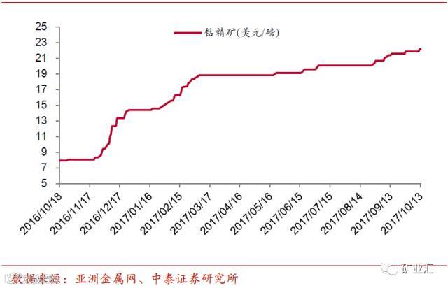 以钴作为重要原材料的三元电池是新能源车的动力单元核心,伴随着新能源汽车、消费电子等行业井喷式发展,对于钴的需求量也在逐步提升。
