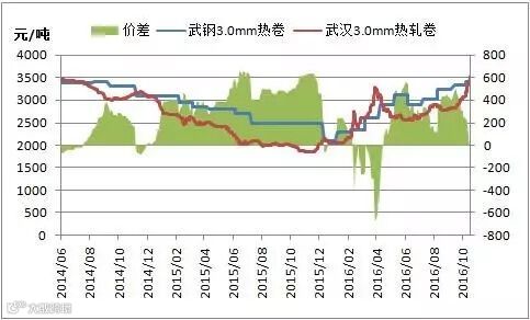 图2:武钢与武汉市场热卷价格走势