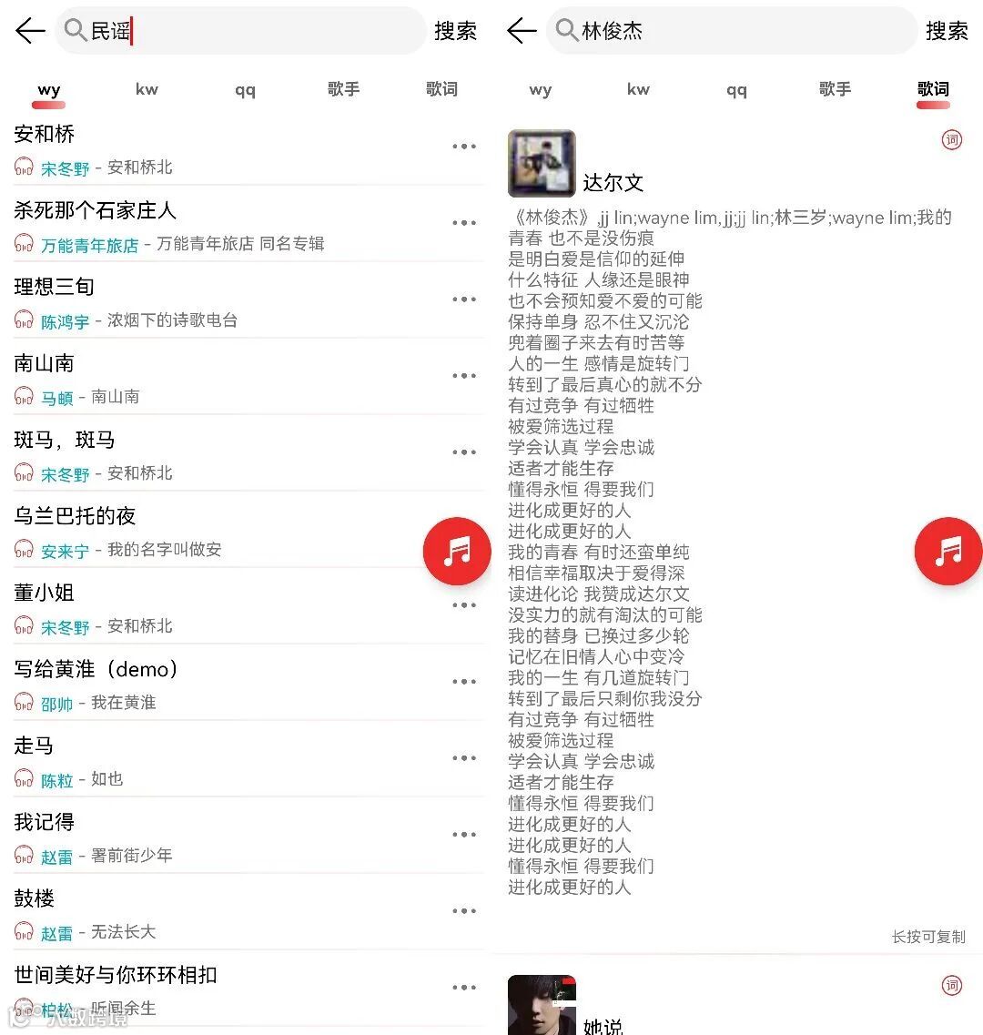 我们还可以搜索歌词,这些都是在其他软件里面没有的功能。
