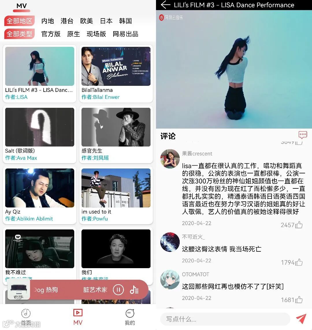 软件还有个突出的点就是有MV这个专区,里面可以很快速的找到自己喜欢类型的视频,画质很不错。