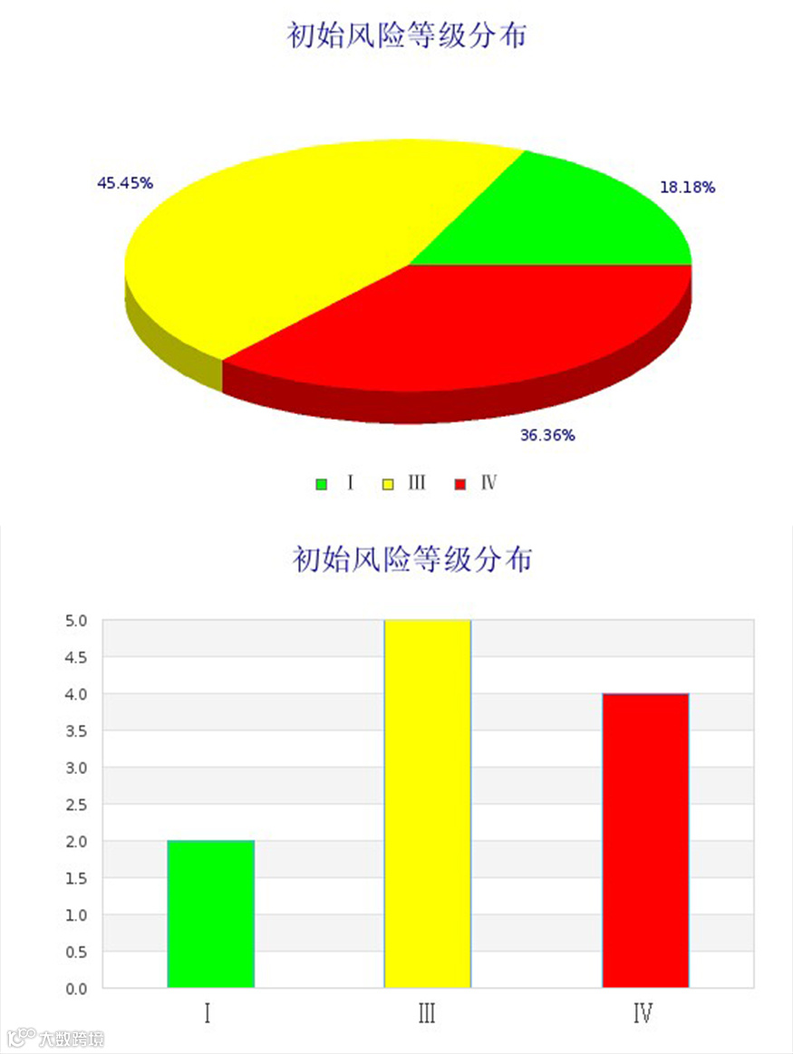 (图为报告中初始风险等级分布的饼状图和柱状图)