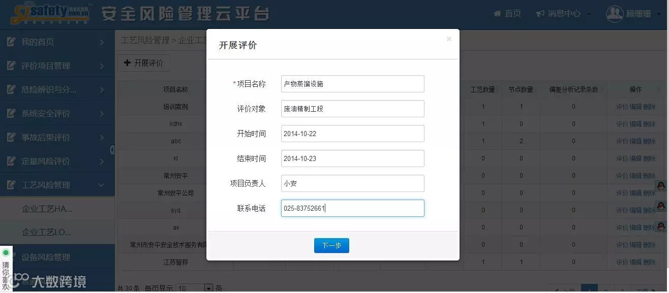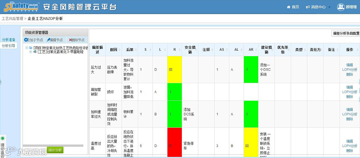 登陆安全无忧网,在左边的菜单栏里选择工艺风险管理中的企业工艺HAZOP分析,开展评价。