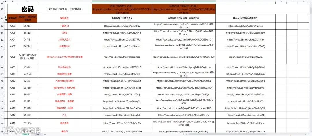 给大家分享一个游戏资源合集,淘宝价值198元,这份超级游戏合集是一个Excel文件。