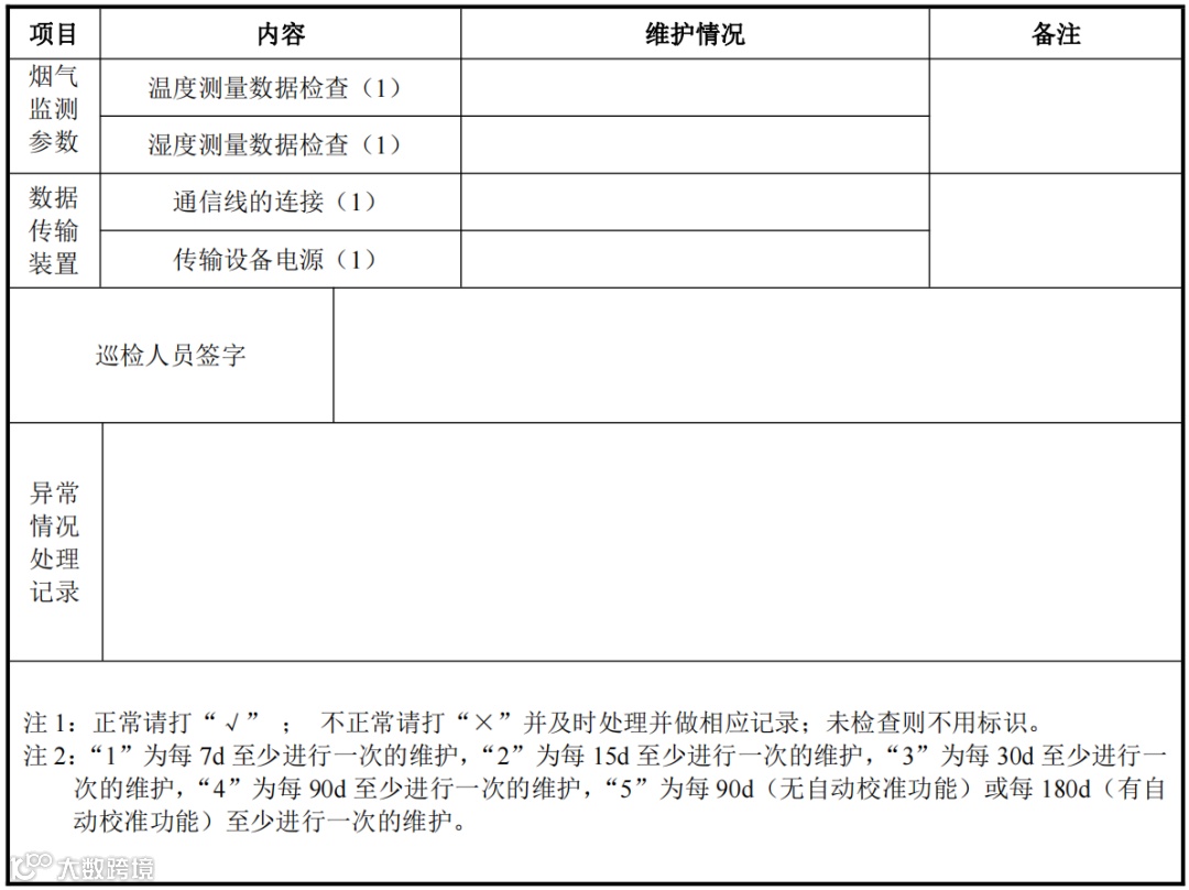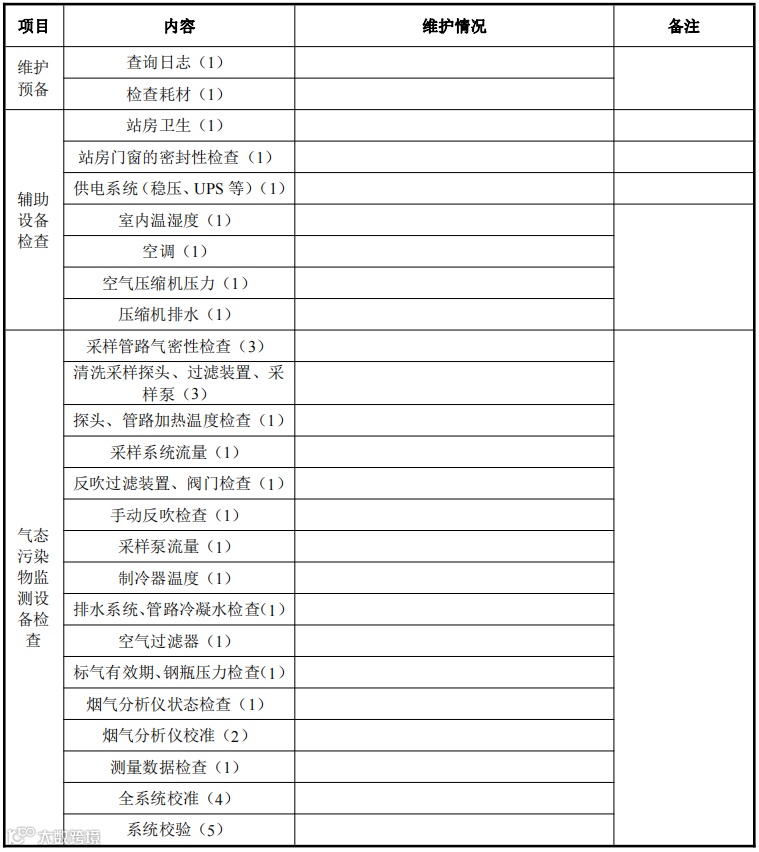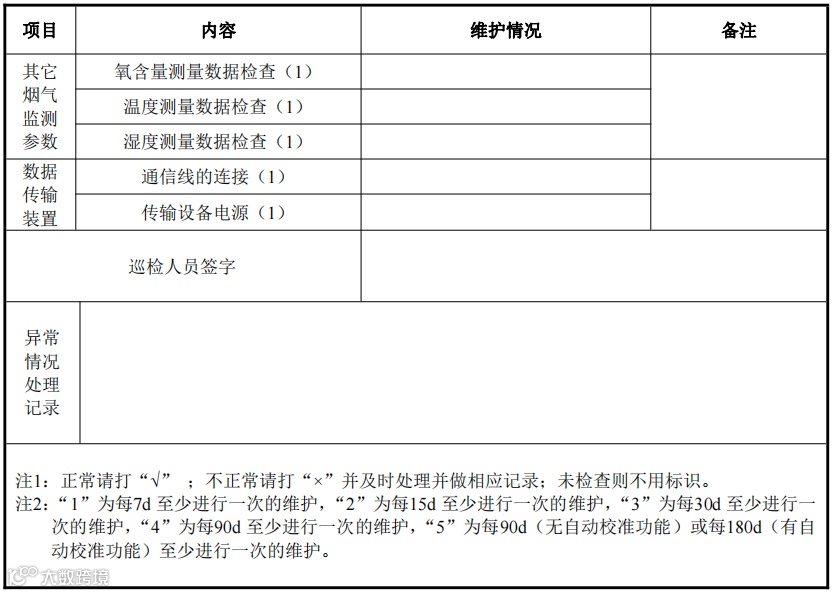 (2)每7天对固定污染源烟气连续自动在线监测系统至少进行 1 次现场维护。