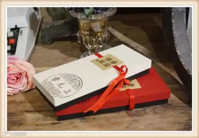 礼盒选用雅莲纹环保艺术纸,有红、白两色,用不同材质的牛皮色环保纸,搭配绸带镶嵌扣盒,既映衬伴手礼“香留情驻”的主题,又不失细节之美,