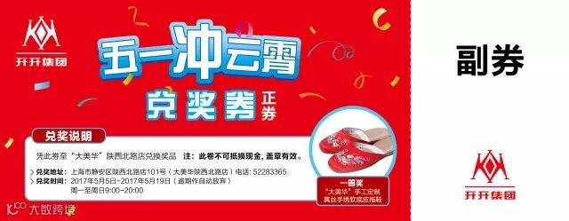 凭此券至“大美华”陕西北路店兑换奖品(注:此券不可抵换现金,盖章有效)