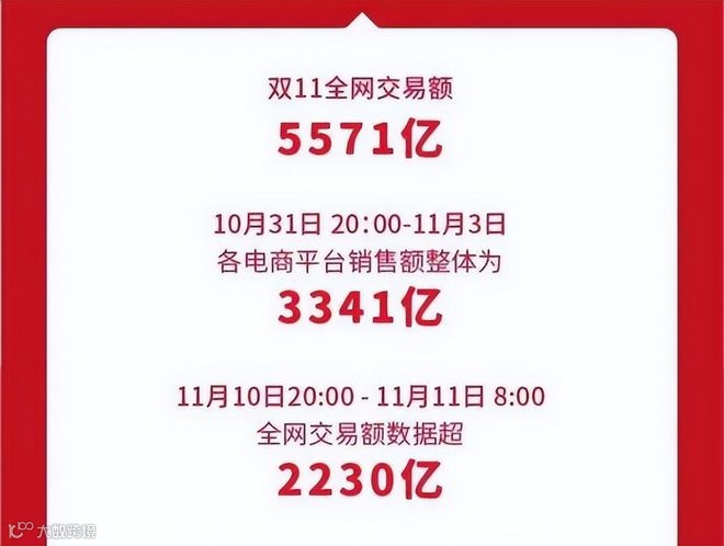 据已公布数据可知,2022双11全网交易额为5571亿元