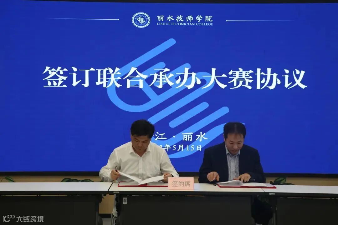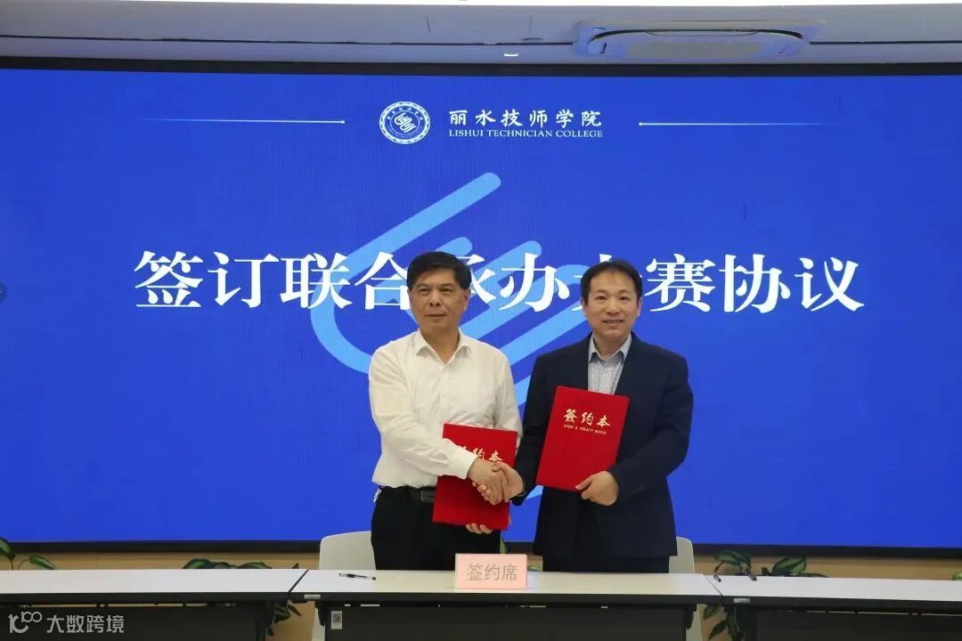 ▲ 丽水技师学院(筹)校长贺陆军与金砖国家技能发展与技术创新大赛组委会执委会副主席何勇签订联合承办大赛协议