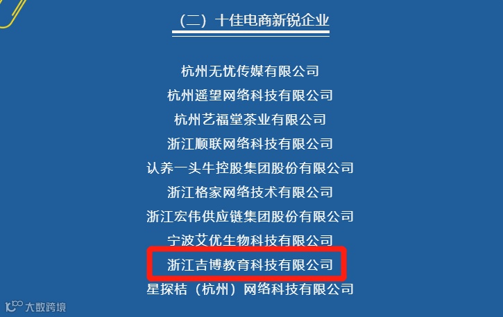 日前,由浙江省电子商务促进会举办的2021年度“评先进树典型”活动经过宣传发动、企业自愿申报、网络投票、专家评审、综合评估等程序,评选结果已产生。集团旗下浙江吉博教育科技有限公司荣获“十佳电商新锐企业”称号,集团董事长兼总裁曾步辉荣获“电商榜样人物”称号。