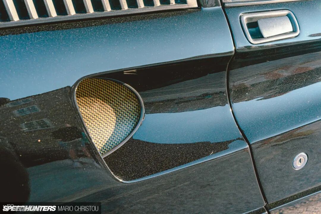 其实Rich是一位创意总监,而他修复的车型身上,就从来都不乏创新,例如这个简约的碳纤维外后视镜,就是他的杰作,而且支撑杆角度与前翼向地面倾斜的角度完全相同。相比原厂的后视镜更美观,丝毫没有违和感。