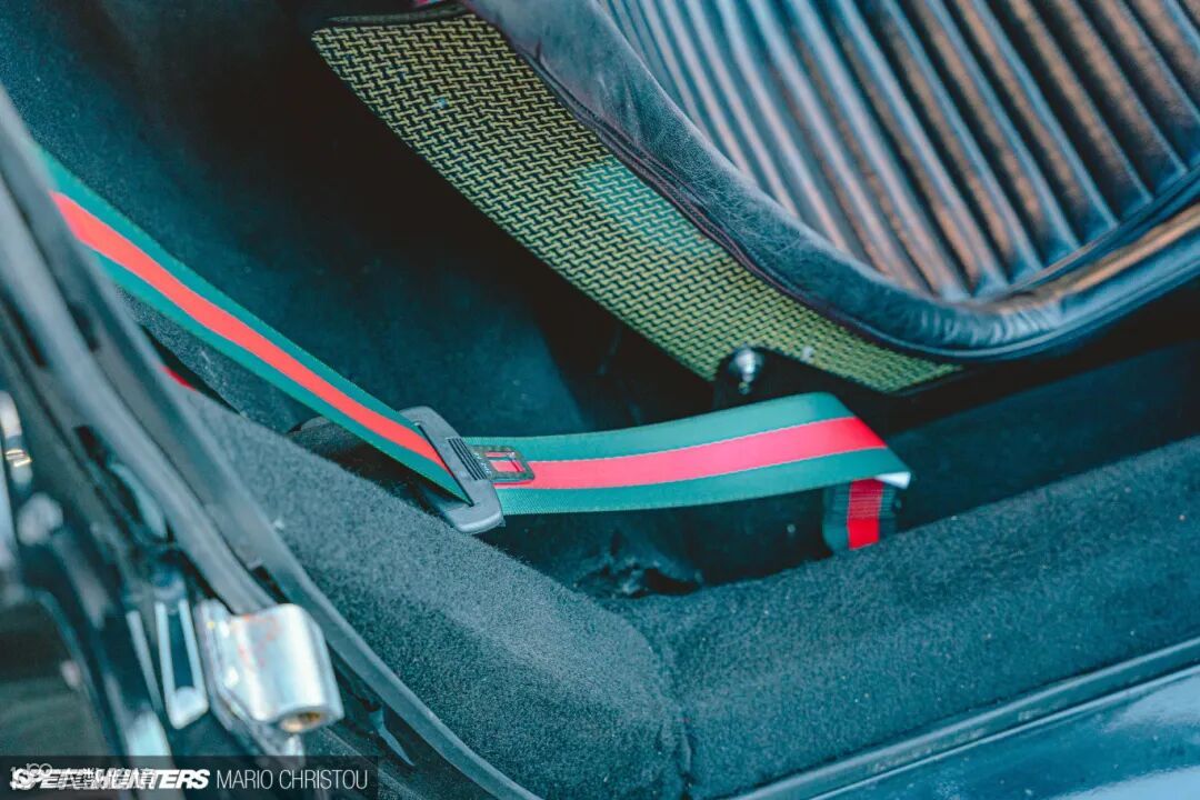 可见其安全带、门上的拉线和灭火器的带子都有GUCCI标志性的颜色搭配,如果不知道的,还真以为这是GUCCI的联名款。