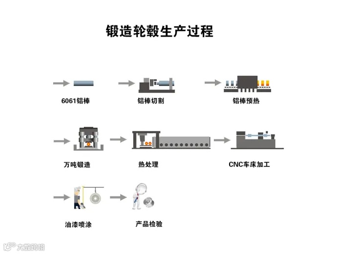 锻造是利用锻压机械对金属坯料施加压力,使其产生塑性变形以获得具有一定机械性能、一定形状和尺寸锻件的加工方法。锻造轮毂可以分为一片式锻造轮毂和多片式锻造轮毂,它们在技术和结构上都有所区别。