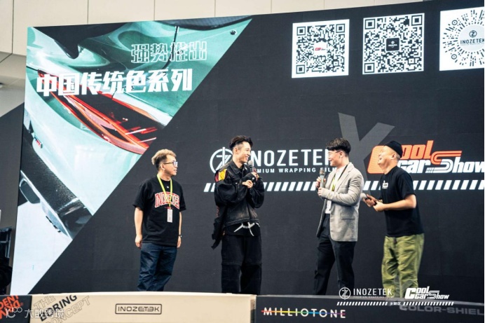 展会现场INOZETEK品牌带来了一系列全新膜品,包括新品Milliotone干贴TPU,中国传统色,联名合作款颜色在INOZETEK x CoolCarShow主题区展出,并举行了品牌介绍会,让观众在INOZETEK产品中感受到中国历史文化的精髓。