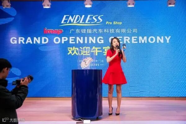 ENDLESS中国总代理商IMSP负责人仇馨仪小姐、ENDLESS中国分销商广东铿锴汽车科技有限公司负责人陈立平先生、广东铿锴代表辛宰牧先生、TEAM ENDLESS官方车手饶隆、著名汽车测评人小刚学长等领导嘉宾及ENDLESS各分销商与店家、汽车行家、汽车媒体朋友亲临开业仪式现场,见证了中国内地首家ENDLESS PRO SHOP的开业。