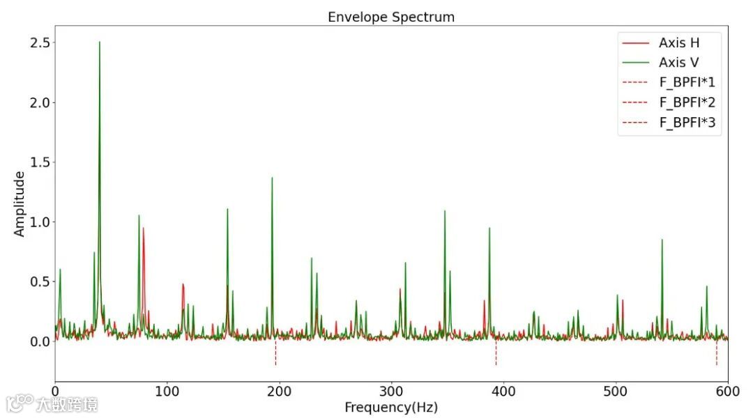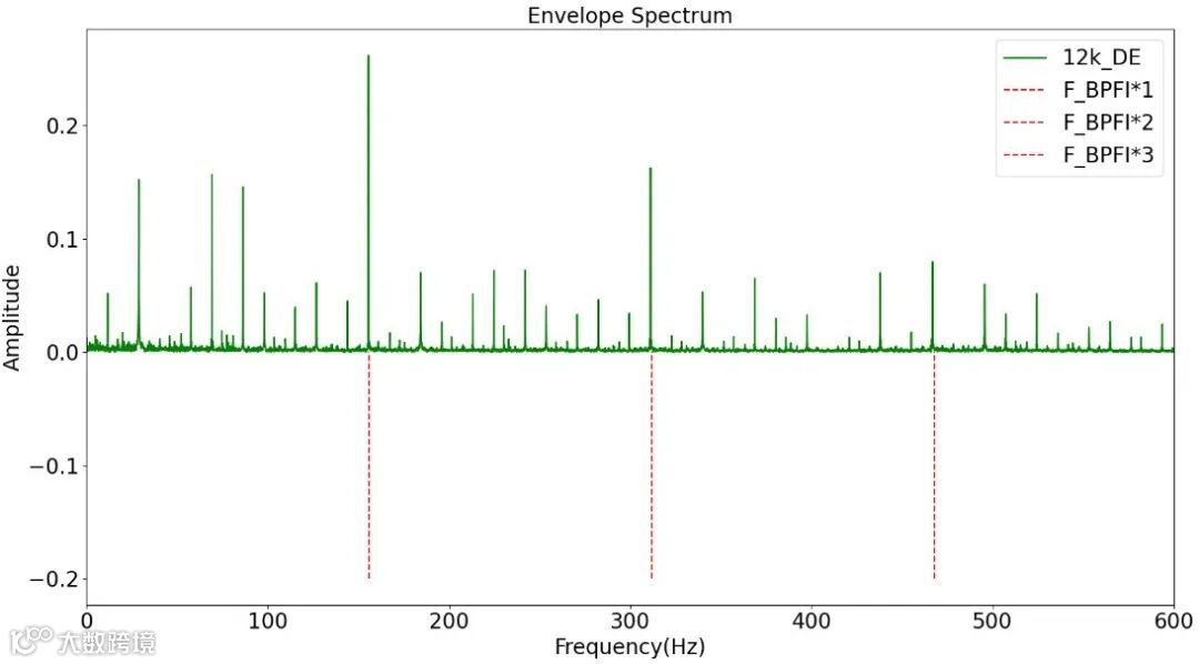 (由于内圈故障特征频率的3倍频在600Hz以内,此处仅展示600Hz以内的包络谱)