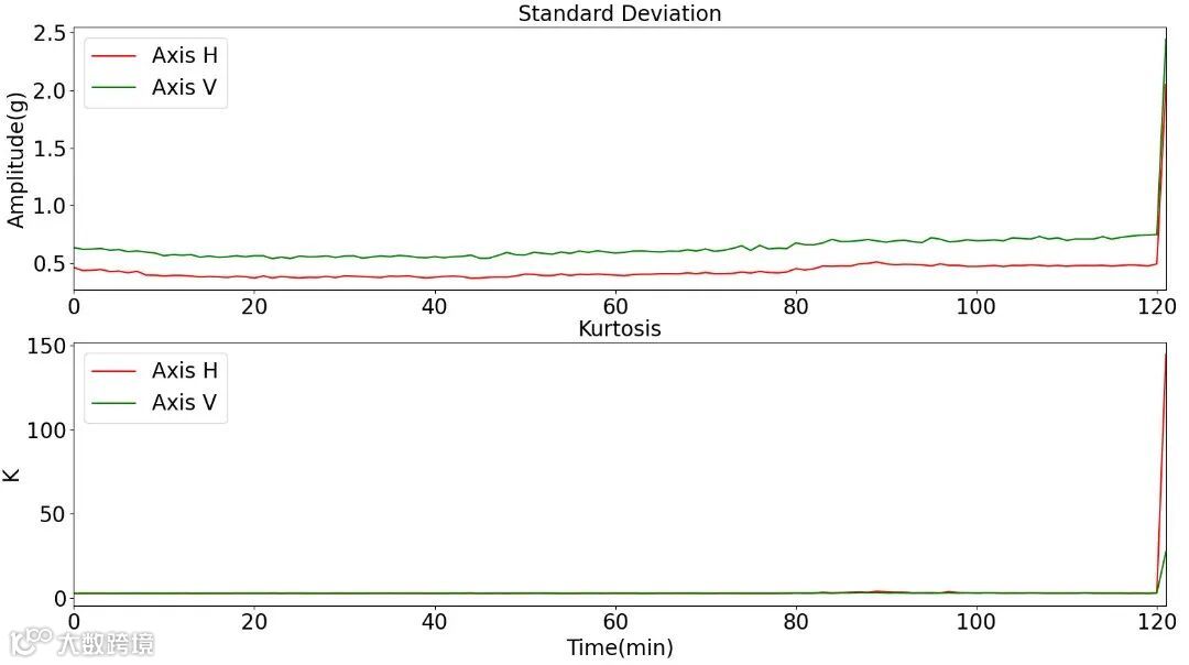 在旋转机械设备实际应用场景下,轴承异常检测方法除了标准差,还可使用峭度系数与之相结合,峭度系数判断轴承处于正常状态还是轻微异常状态,标准差判断轴承异常状态的严重程度。本文,我们将继续研究轴承保持架故障和内圈故障诊断,以及如何运用峭度系数进行轴承异常检测。