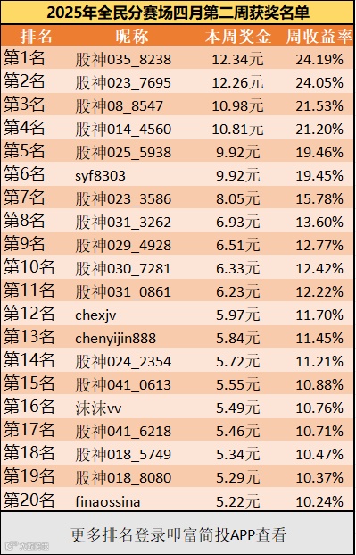 叩富全民炼股争霸赛上周盈利排名公布、奖金已发放,参赛的朋友可以到叩富简投大赛专用奖金钱包查看,只要满10元就能直接提现,每周每月都有现金奖励。